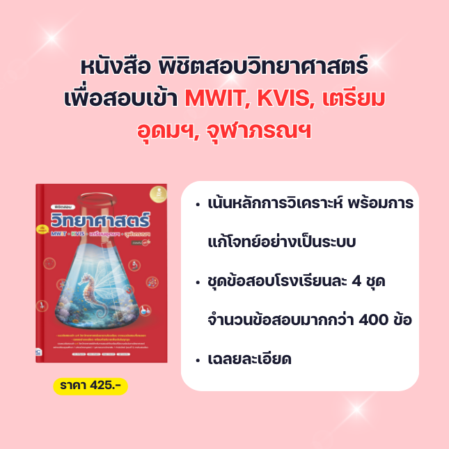 หนังสือ พิชิตสอบวิทยาศาสตร์ เพื่อสอบเข้า MWIT, KVIS, เตรียมอุดมฯ, จุฬาภรณฯ มั่นใจเต็ม 100