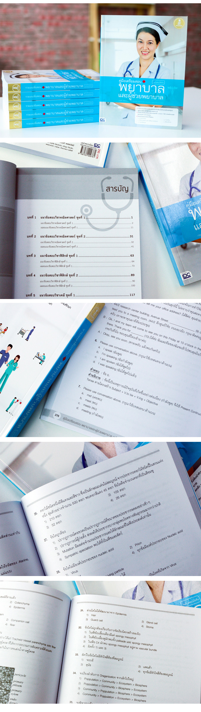 เป็นแนวข้อสอบสำหรับใช้เตรียมตัวสอบเข้าศึกษาต่อให้สาขาพยาบาล และผู้ช่วยพยาบาล มีแนวข้อสอบครบทั้ง 7 วิชา คือ คณิตศาสตร์ ฟิสิกส์ เคมี ชีววิทยา ภาษาอังกฤษ ภาษาไทย และสังคม มีข้อสอบมากกว่า 700 ข้อ สามารถใช้อ่านเตรียมสอบได้ทุกสถาบันการศึกษา
