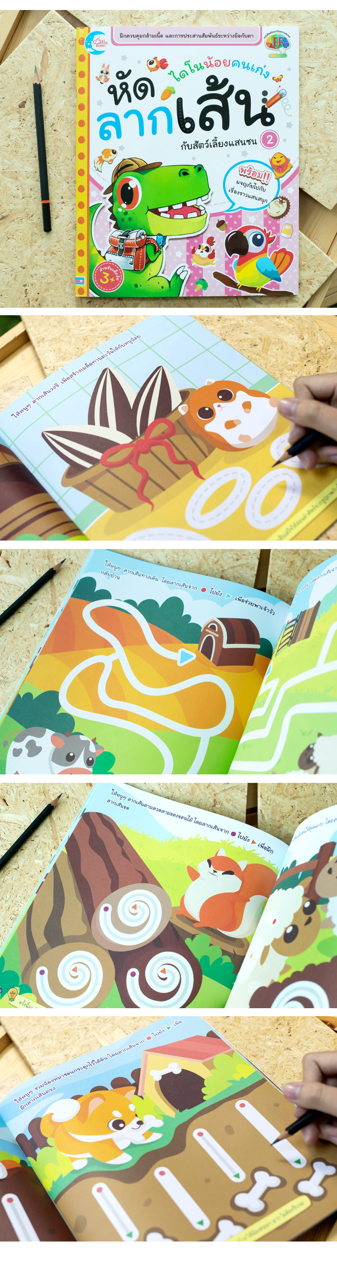 เล่มนี้ ถูกออกแบบมาให้มีการไล่ระดับความยากง่ายของการฝึกทักษะลากเส้น มีจำนวนของเส้นไม่เยอะหรือถี่เกินไปจนทำให้น้องๆ รู้สึกเบื่อหน่าย อีกทั้งภาพประกอบในเรื่องเกี่ยวกับสัตว์เลี้ยงจะช่วยพัฒนาความคิดสร้างสรรค์ เปิดโลกจินตนาการควบคู่ไปกับการฝึกกล้ามเนื้อมือให้แข็งแรง พร้อมสำหรับการฝึกเขียนขั้นต่อไป