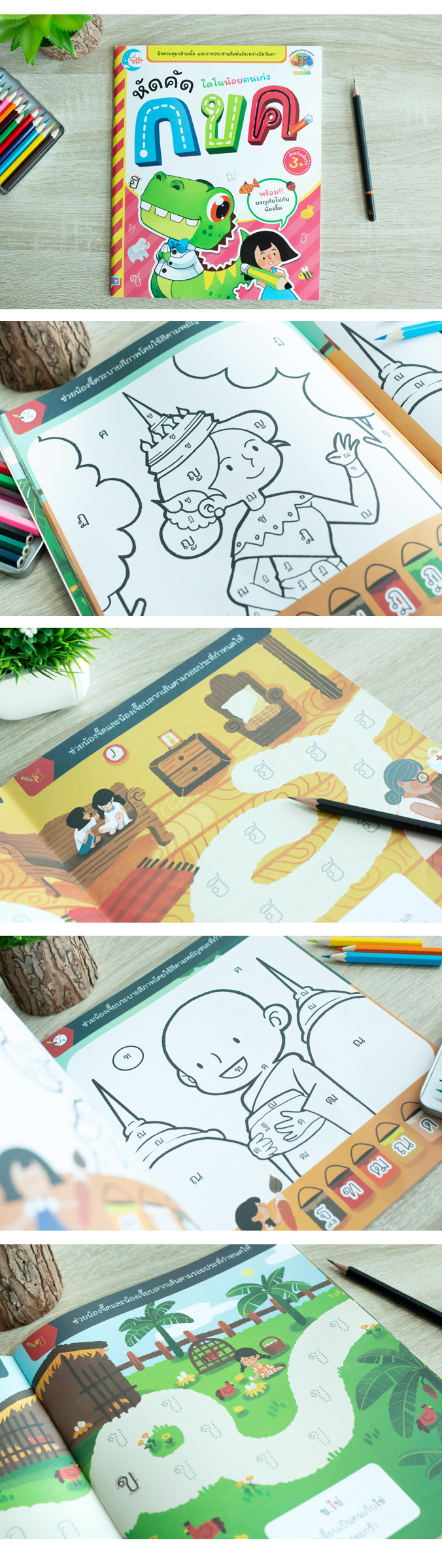 ปูพื้นฐานการเรียนรู้ภาษาไทยไปกับ ไดโนน้อยคนเก่ง หัดคัด กขค พร้อมสนุกสนานกับการคัดตามรอยเส้นประพยัญชนะไทยทั้ง 44 ตัวอักษร นอกจากนี้การหัดคัดยังช่วยฝึกสมาธิ ความอดทน กล้ามเนื้อมัดเล็ก และยังเป็นการใช้เวลาว่างให้เกิดประโยชน์