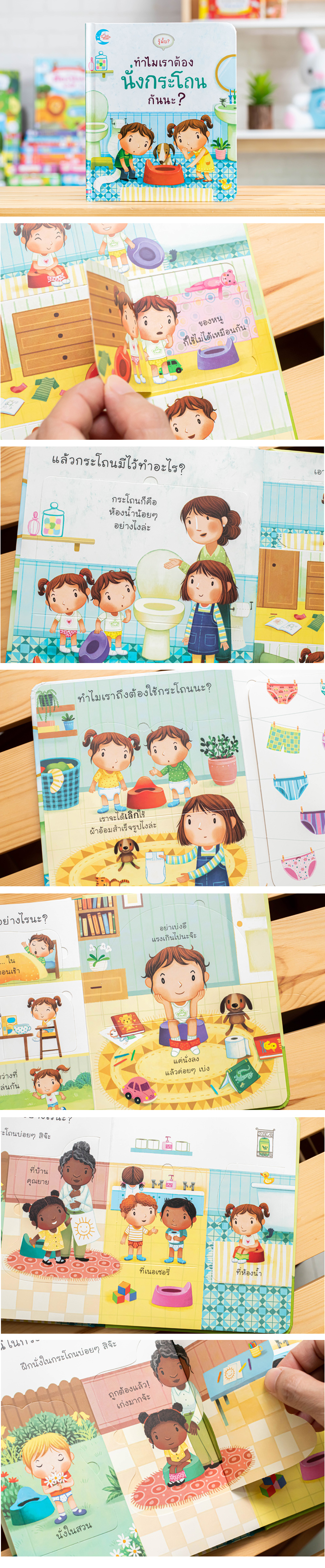 นิทานกลไกบอร์ดบุ๊คกลไก อธิบายเกี่ยวกับการฝึกใช้กระโถนในการขับถ่ายสำหรับเด็กน้อย และสุขอนามัยที่เกี่ยวข้อง