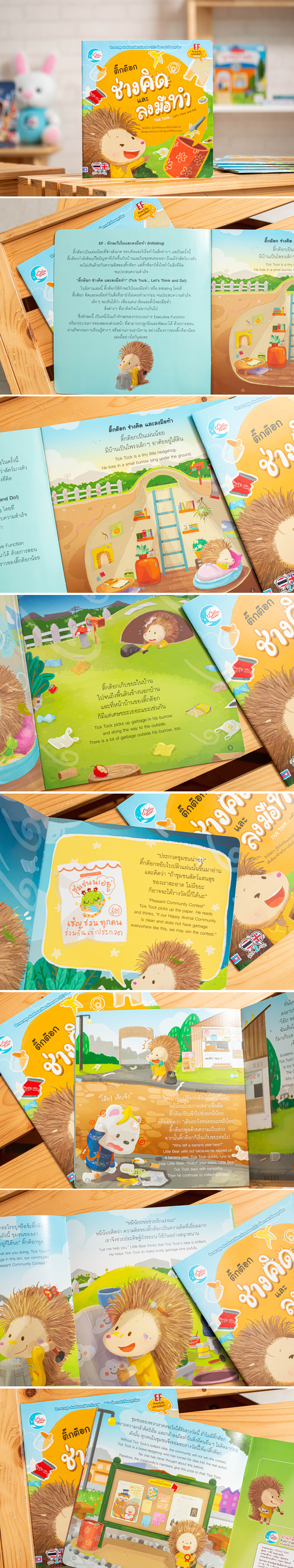 นิทานภาพแสนสนุกของติ๊กต๊อกเม่นน้อย ที่จะทำให้เด็กๆ ได้เรียนรู้และเข้าใจ ทักษะการริเริ่มและลงมือทำ (Initiating) ซึ่งเป็นทักษะอย่างหนึ่งของ Executive Function(EF) คือ การฝึกให้เด็กๆ คิดริเริ่มและลงมือทำ แม้บางครั้งจะเป็นสิ่งที่เขายังไม่เคยทำมาก่อน ก็สามารถทำจนประสบความสำเร็จได้ เพียงแค่คิดและตั้งใจลงมือทำ สิ่งต่างๆ ที่คิดก็จะไม่มีอะไรยากเกินไป เด็ก ๆ จะได้เรียนรู้อย่างสนุกผ่านตัวละครที่สดใสน่ารักชวนให้น่าอ่าน เหมาะสำหรับให้คุณแม่คุณพ่ออ่านให้ฟังอย่างสนุกสนานด้วยกันในทุกๆวัน