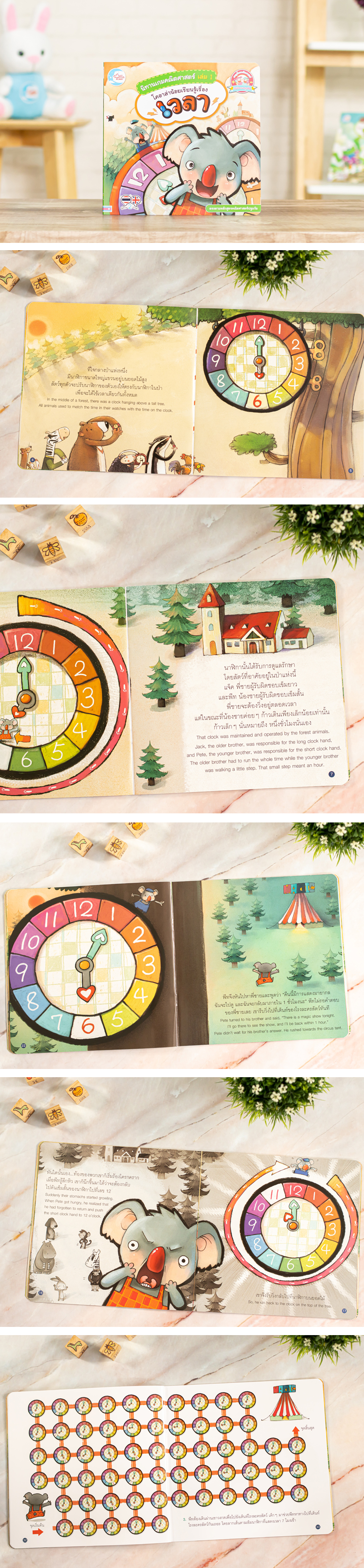 ซึ่งเป็นทักษะพื้นฐานอย่างหนึ่งของคณิตศาสตร์ ที่ทำให้เรียนรู้จัก เวลาง่ายๆ เรียนรู้เรื่องเข็มสั้นบอกชั่วโมง และเข็มยาวบอกนาที และตัวเลข 1-12 เด็ก ๆ จะได้เรียนรู้อย่างสนุกผ่านตัวละครที่สดใสน่ารักชวนให้น่าอ่าน เหมาะสำหรับให้คุณแม่คุณพ่ออ่านให้ฟังอย่างสนุกสนานด้วยกันในทุกๆวัน