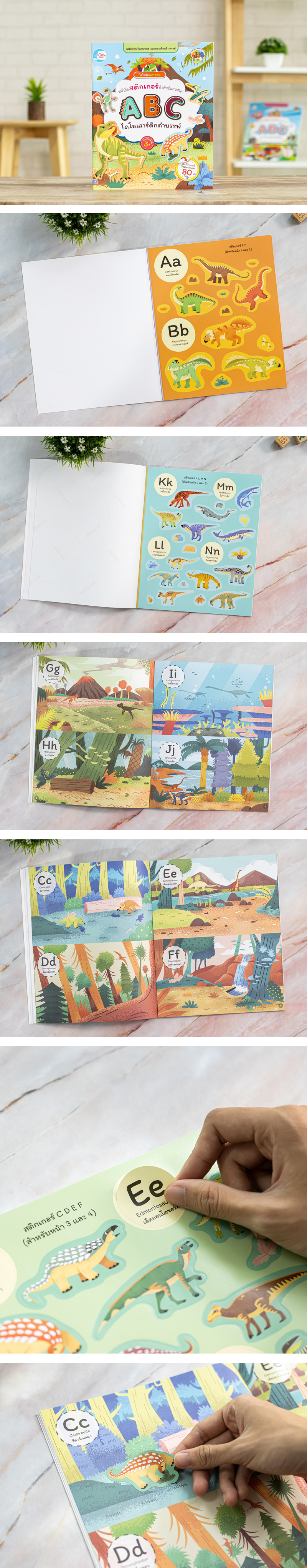 พร้อมทั้งได้รู้จัก ตัวอักษร A - Z ผ่านสติกเกอร์ไดโนเสาร์ทั้ง 26 ชนิด นอกจากนี้ยังได้เรียนรู้คำศัพท์ภาษาอังกฤษ และเพลิดเพลินกับการติดสติกเกอร์สุดน่ารัก