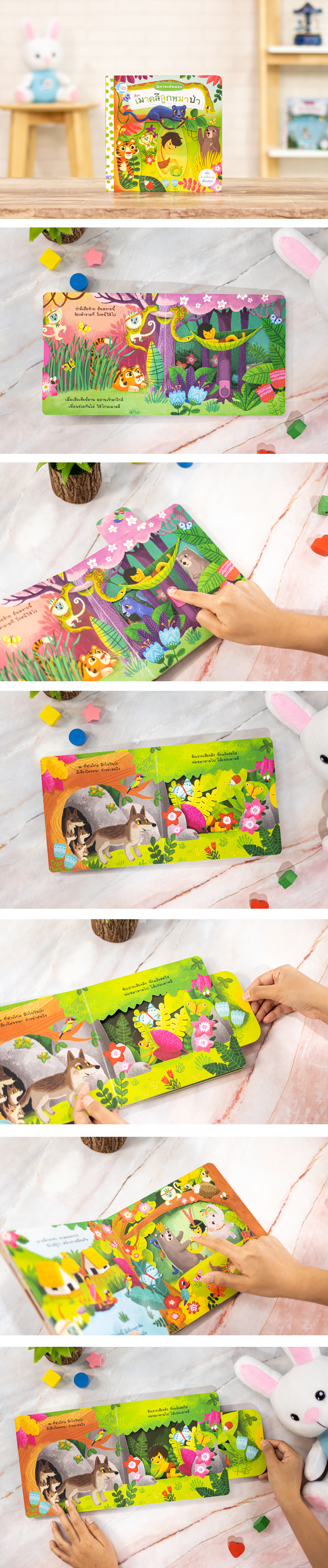 1. เป็นหนังสือแบบมีกลไกดึง หมุน ดัน เลื่อน เพื่อให้เด็กๆ ได้ฝึกใช้กล้ามเนื้อมัดเล็ก และเพิ่มความสนุกสนานระหว่างเล่าเรื่อง