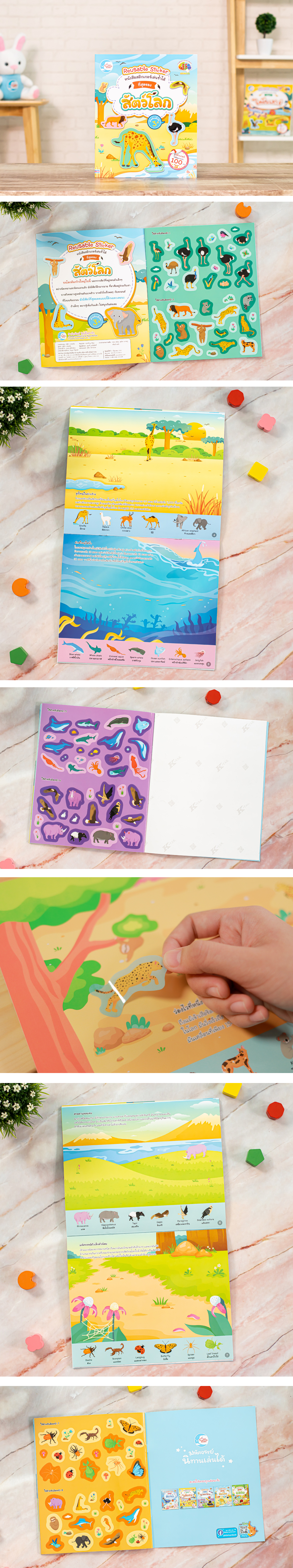 หนังสือสติกเกอร์เล่นซ้ำได้ ชุด ที่สุดของสัตว์โลก ตัวสติกเกอร์เมื่อแปะแล้วสามารถแกะออกมาแปะได้ใหม่อีกเรื่อยๆ