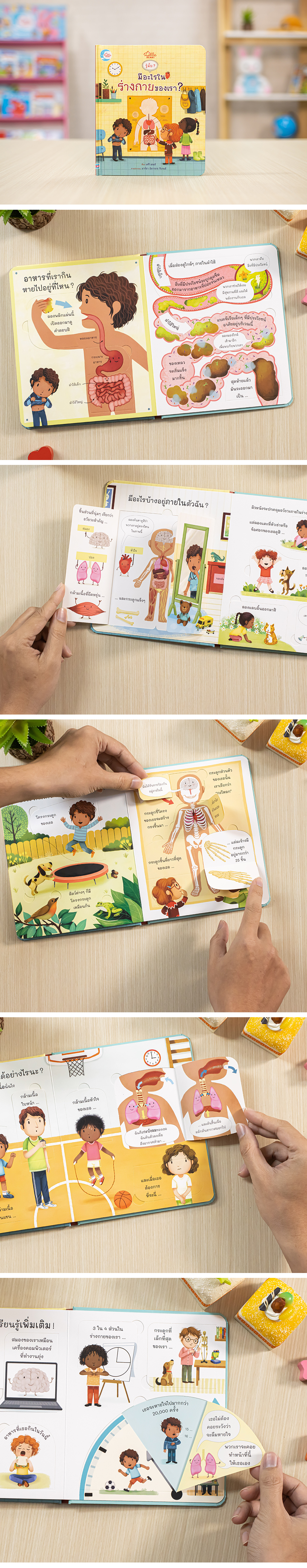 มาเรียนรู้ส่วนประกอบ หน้าที่ และความสำคัญของอวัยวะต่างๆ ในร่างกายของเราผ่านแผ่นพลิกเปิดจำนวนมากในหนังสือด้วยกันเถอะ