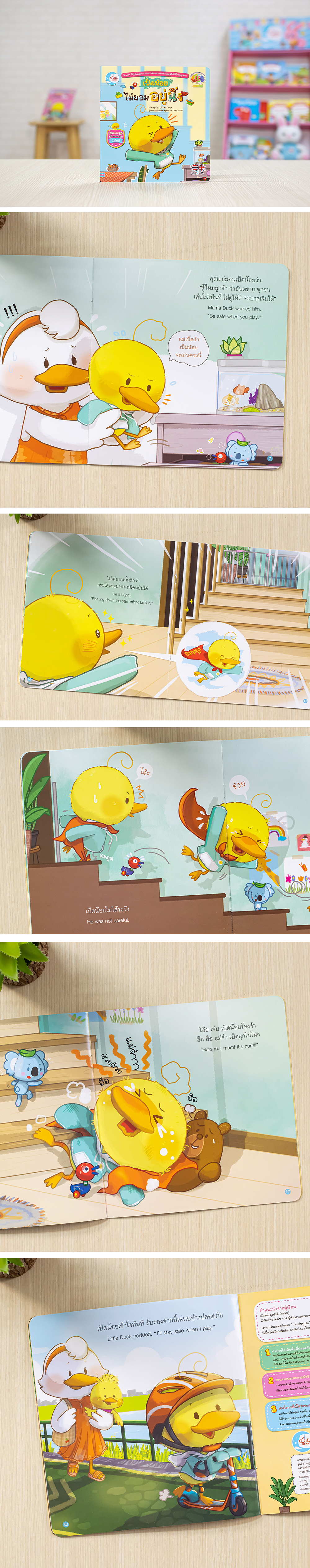 นิทานภาพสุดน่ารักของเจ้าเป็ดน้อย ที่จะทำให้เด็กๆ ได้เรียนรู้และเข้าใจ พฤติกรรมหรือลักษณะนิสัยที่ดี ซึ่งเป็นพัฒนาการของสมองส่วนหน้า Executive Function หรือ EF ที่สามารถฝึกและส่งเสริมให้กับลูกน้อยได้เข้าใจ ถึงความอันตรายหากเล่นซุกซนอย่างไม่ระมัดระวัง เด็กๆ จะได้เรียนรู้อย่างสนุกผ่านตัวละครที่สดใสน่ารักชวนให้น่าอ่าน เหมาะสำหรับให้คุณแม่คุณพ่ออ่านให้ฟังอย่างสนุกสนานด้วยกันในทุกๆ วัน