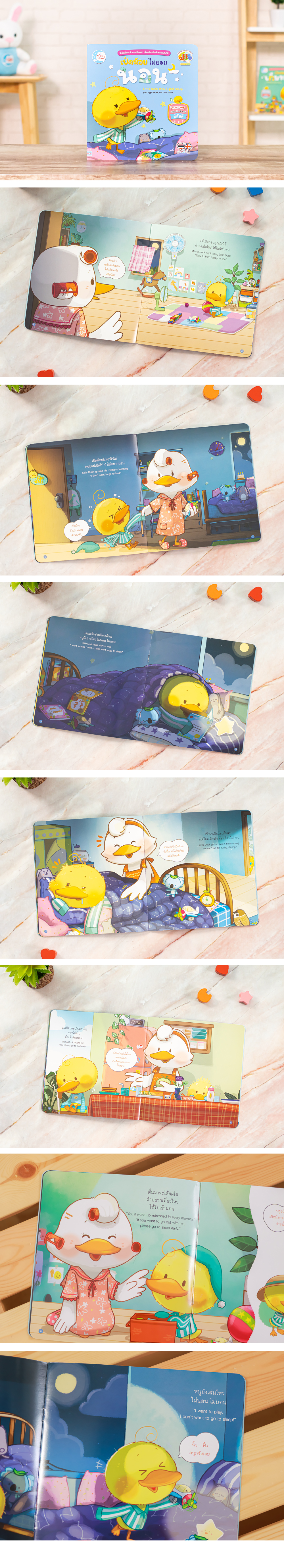 นิทานภาพสุดน่ารักของเจ้าเป็ดน้อยบัดดี้ ที่จะทำให้เด็กๆ ได้เรียนรู้และเข้าใจ พฤติกรรมหรือลักษณะนิสัยที่ดี ซึ่งเป็นพัฒนาการของสมองส่วนหน้า Executive Function หรือ EF ที่สามารถฝึกและส่งเสริมให้กับลูกน้อยได้เข้าใจว่า ถ้าเด็กๆ ไม่ยอมเข้านอนเพราะห่วงเล่น หรือ อยากทำสิ่งต่างๆ ในเวลาที่จะต้องเข้านอน ผลของการอดนอนนั้นจะเป็นเช่นไร เด็กๆ จะได้เรียนรู้อย่างสนุกผ่านตัวละครที่สดใสน่ารักชวนให้น่าอ่าน เหมาะสำหรับให้คุณแม่คุณพ่ออ่านให้ฟังอย่างสนุกสนานด้วยกันในทุกๆ วัน