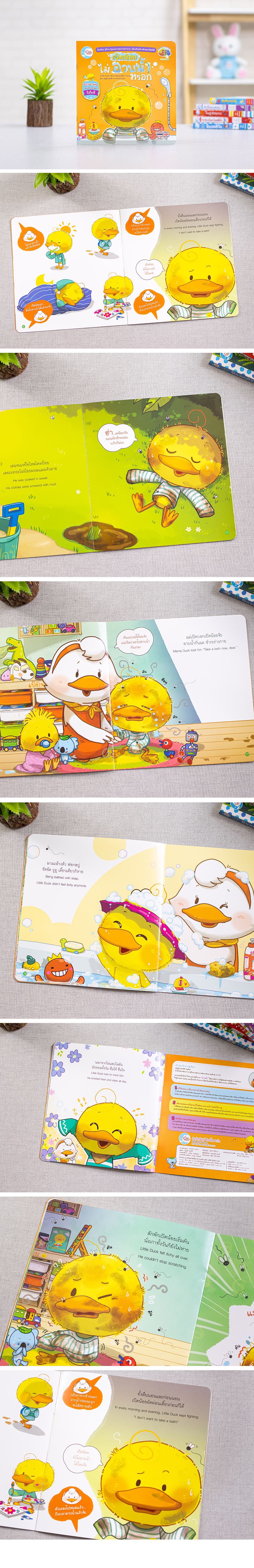 นิทานภาพสุดน่ารักของเจ้าเป็ดน้อย ที่จะทำให้เด็กๆ ได้เรียนรู้และเข้าใจ พฤติกรรมหรือลักษณะนิสัยที่ดี ซึ่งเป็นพัฒนาการของสมองส่วนหน้า Executive Function หรือ EF ที่สามารถฝึกและส่งเสริมให้กับลูกน้อยได้เข้าใจและมองเห็นภาพว่า ไม่อาบน้ำนั้นจะส่งผลอย่างไรต่อตัวเราบ้าง เด็กๆ จะได้เรียนรู้อย่างสนุกผ่านตัวละครที่สดใสน่ารักชวนให้น่าอ่าน เหมาะสำหรับให้คุณแม่คุณพ่ออ่านให้ฟังอย่างสนุกสนานด้วยกันในทุกๆ วัน