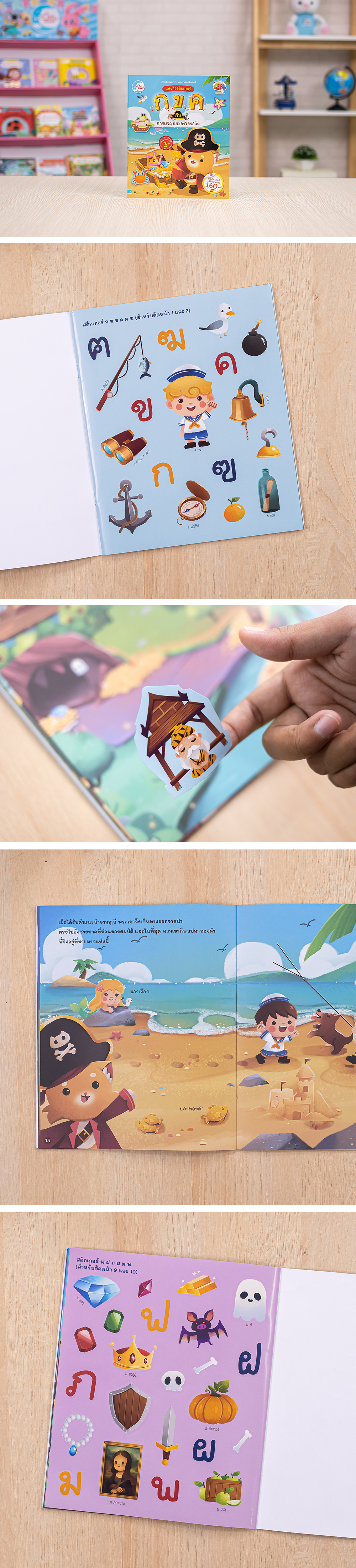 เป็นเครื่องมือที่ช่วยส่งเสริมความคิดสร้างสรรค์ เด็กๆ สามารถสร้างเรื่องราวต่างๆ ได้ตามจินตนาการ พร้อมทั้งได้เรียนรู้เกี่ยวกับคำศัพท์ และพยัญชนะไทยทั้ง 44 ตัว สนุกไปกับการผจญภัยของเหล่าโจรสลัด และเพลิดเพลินกับการติดสติกเกอร์สุดน่ารัก
