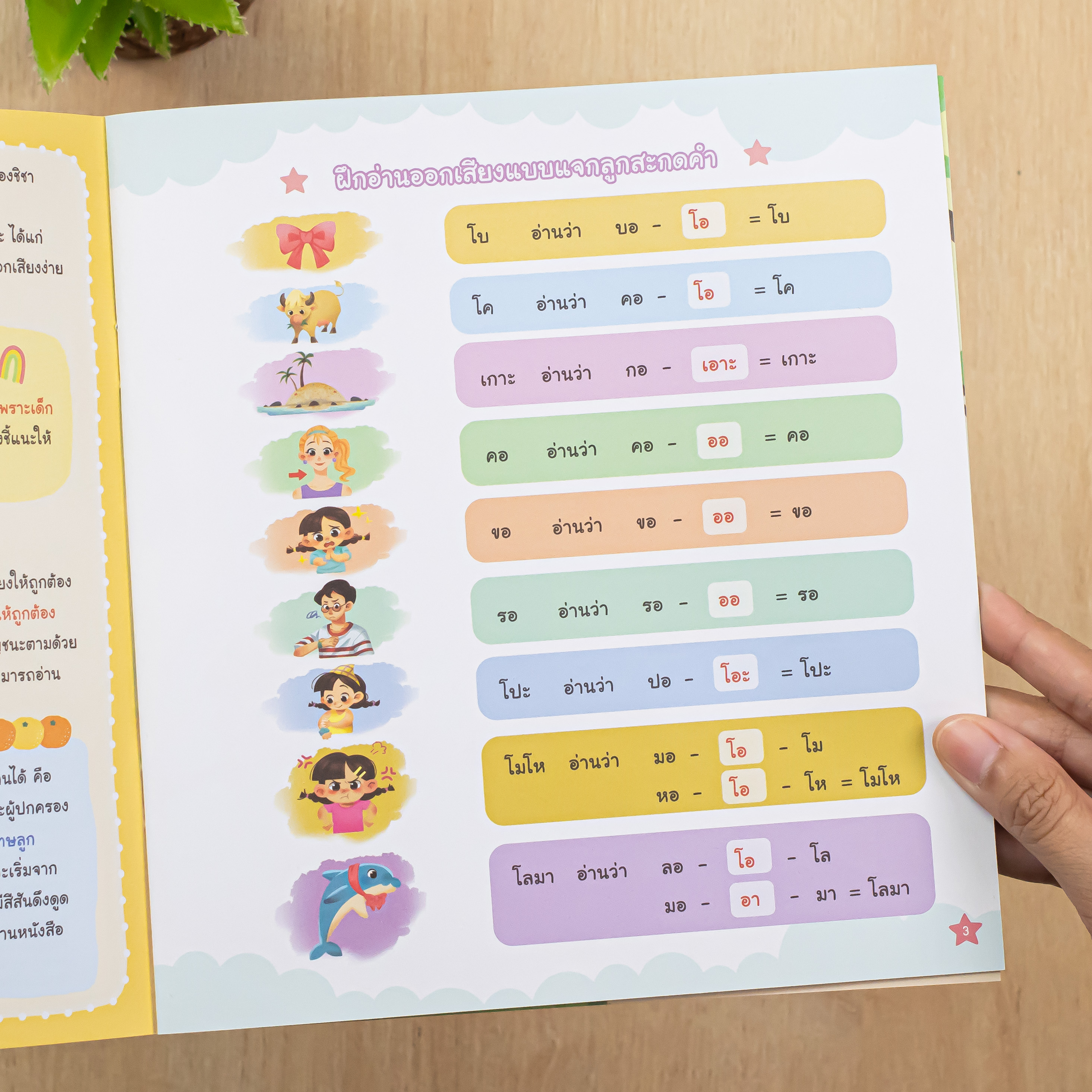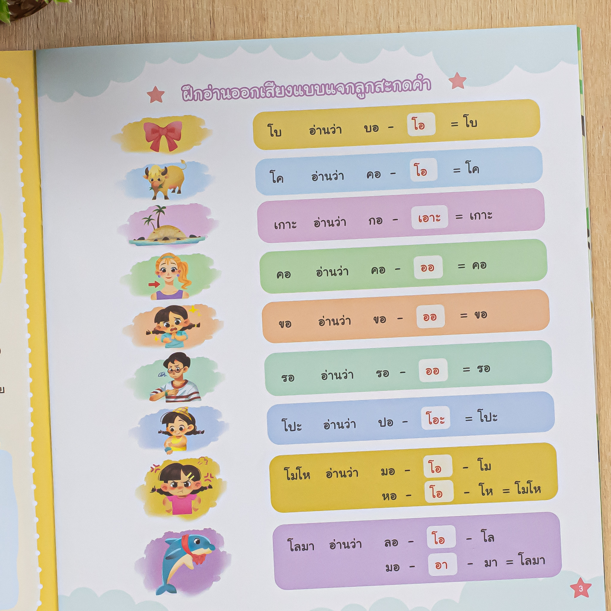2. มีแบบฝึกออกเสียงสระโอะ สระโอ สระเอาะ และสระออ โดยใช้คำศัพท์ในนิทาน แบบแจกลูกสะกดคำ