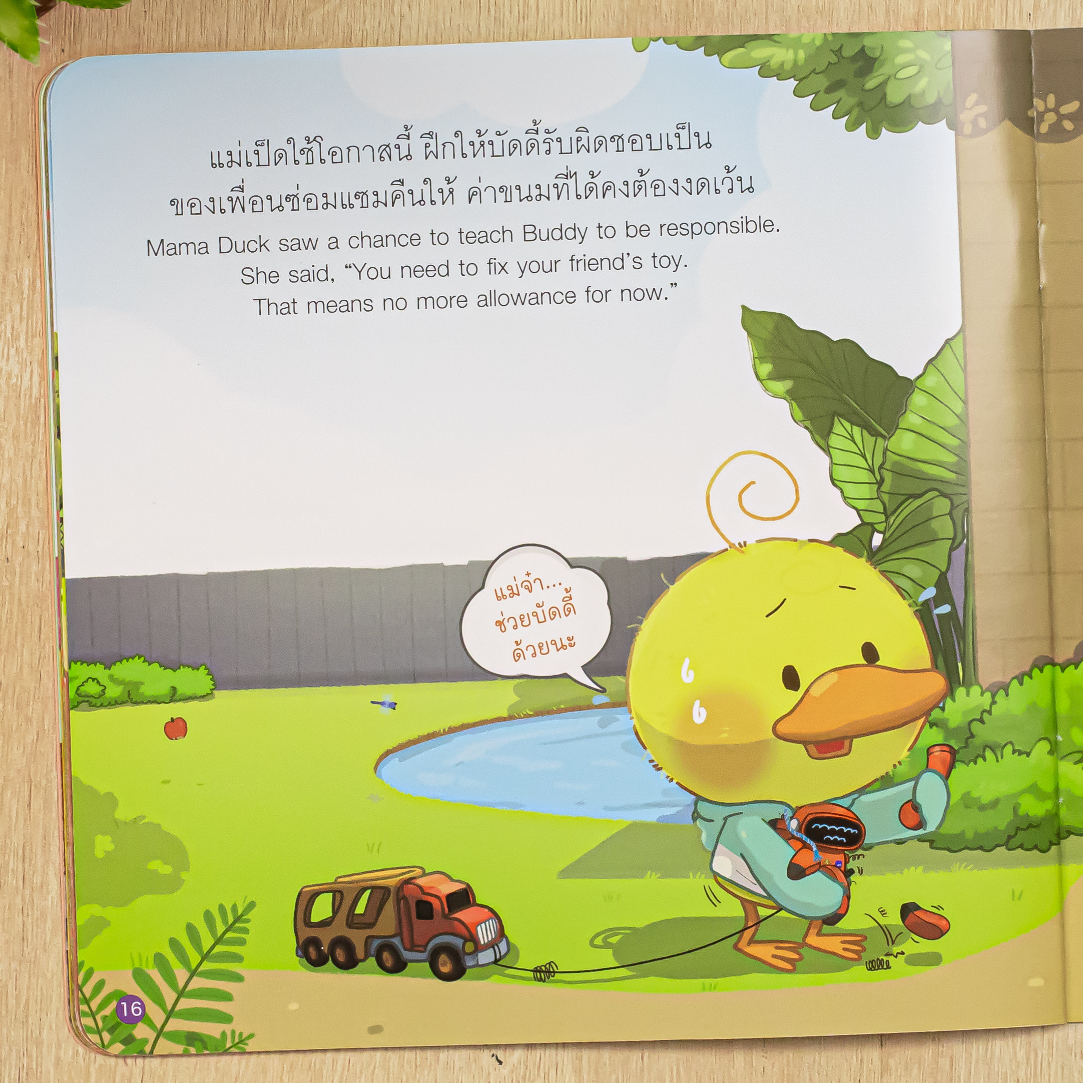 นิทานภาพชุด เสริมสร้างนิสัยดีให้เด็ก ๆ อย่างอ่อนโยน ผ่านเรื่องราวสนุกสนานของเป็ดน้อยบัดดี้ ที่ช่วยให้เด็ก ๆ เรียนรู้การรอคอย แบ่งปัน และลดพฤติกรรมยื้อแย่งของจากมือผู้อื่นโดยไม่ได้รับอนุญาต ลดการขัดแย้งระหว่างเพื่อน ๆ พร้อมทั้งสามารถอ่านเพลินได้ทั้ง 2 ภาษา ไทยและอังกฤษ