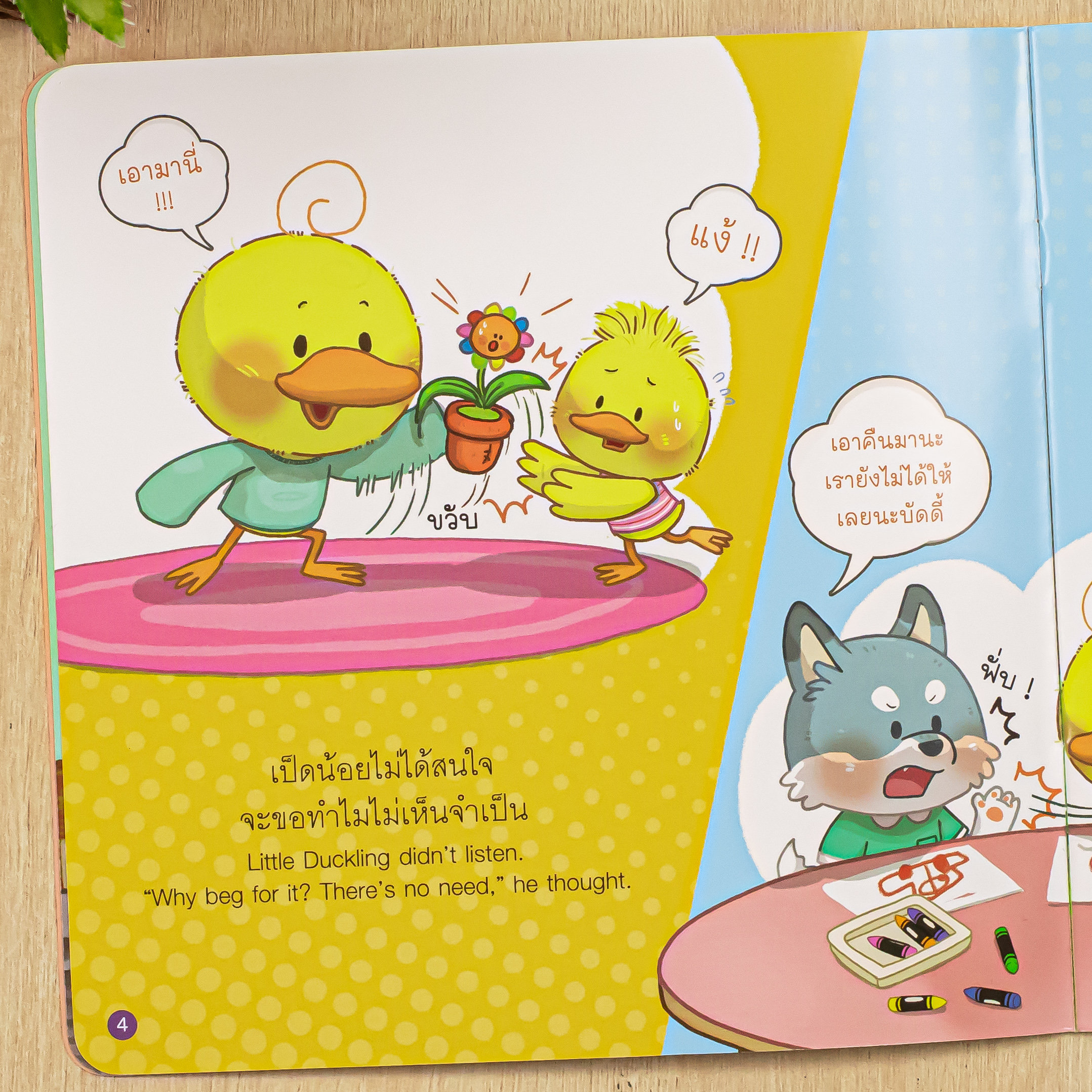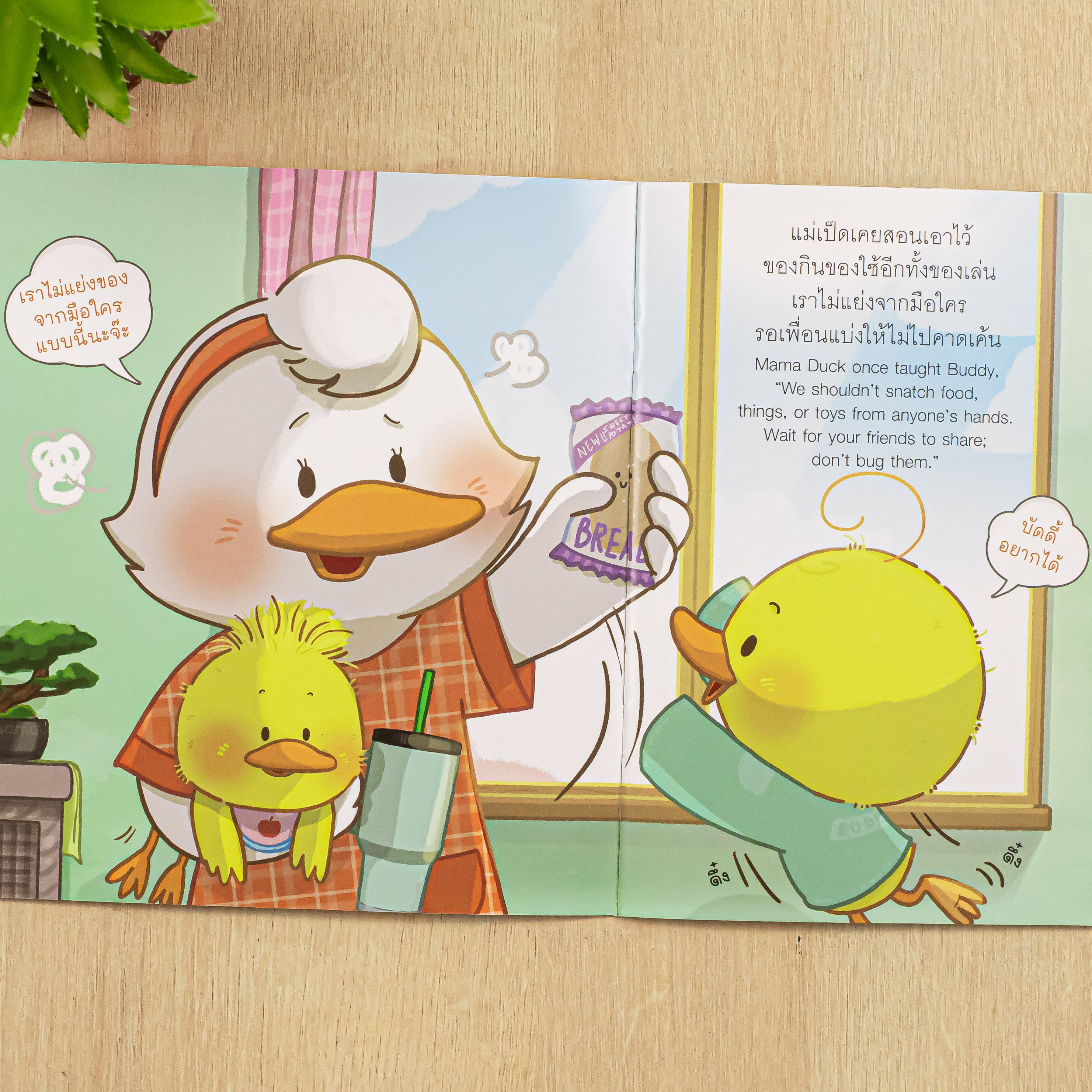 นิทานภาพชุด เสริมสร้างนิสัยดีให้เด็ก ๆ อย่างอ่อนโยน ผ่านเรื่องราวสนุกสนานของเป็ดน้อยบัดดี้ ที่ช่วยให้เด็ก ๆ เรียนรู้การรอคอย แบ่งปัน และลดพฤติกรรมยื้อแย่งของจากมือผู้อื่นโดยไม่ได้รับอนุญาต ลดการขัดแย้งระหว่างเพื่อน ๆ พร้อมทั้งสามารถอ่านเพลินได้ทั้ง 2 ภาษา ไทยและอังกฤษ เหมาะสำหรับเด็ก ๆ และครอบครัวที่จะเรียนรู้และสนุกไปพร้อมกันทุกวัน