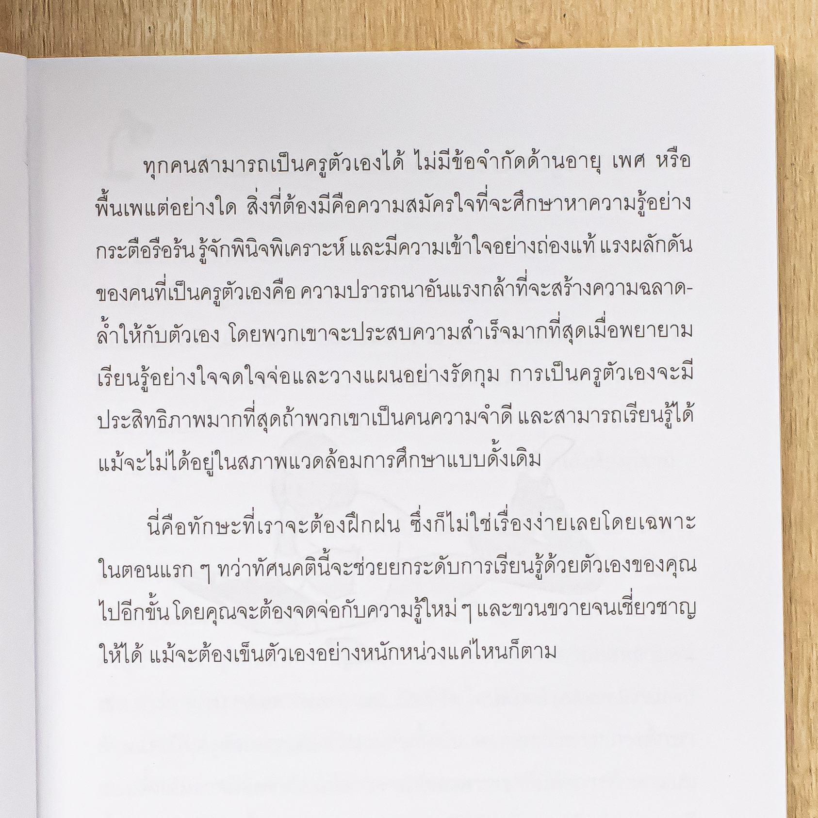 หนังสือเล่มนี้จะช่วยสอนเทคนิคในการเรียนรู้เรื่องต่าง ๆ ด้วยตัวเอง ไม่ว่าคุณจะเป็นนักเรียนหรือคนวัยทำงาน แน่นอนว่าจะต้องมีบางช่วงเวลาที่สถานการณ์บังคับให้คุณต้องศึกษาเรื่องบางเรื่องด้วยตัวคุณเองแน่ ๆ เมื่ออ่านหนังสือเล่มนี้ คุณจะเข้าใจอย่างถ่องแท้ว่าการเป็นทั้งครูและนักเรียนด้วยตัวเองนั้นทำอย่างไร คุณจะได้ศึกษาเทคนิคการอ่านให้เข้าใจและจำได้แม่นยำ วิธีการจดโน้ตแบบคอร์เนลล์ที่ช่วยให้จัดการข้อมูลได้ง่ายขึ้น รวมถึงวิธีการหนดแผนการและเป้าหมายในการเรียนเพื่อให้เรียนรู้ได้อย่างมีประสิทธิภาพ กลยุทธ์มากมายในหนังสือเล่มนี้จะช่วยให้ผู้อ่านสามารถเรียนรู้สิ่งต่าง ๆ ด้วยตัวเองได้โดยไม่ต้องรอให้ใครมาสอน แถมการเรียนรู้ของคุณยังมีประสิทธิภาพด้วย