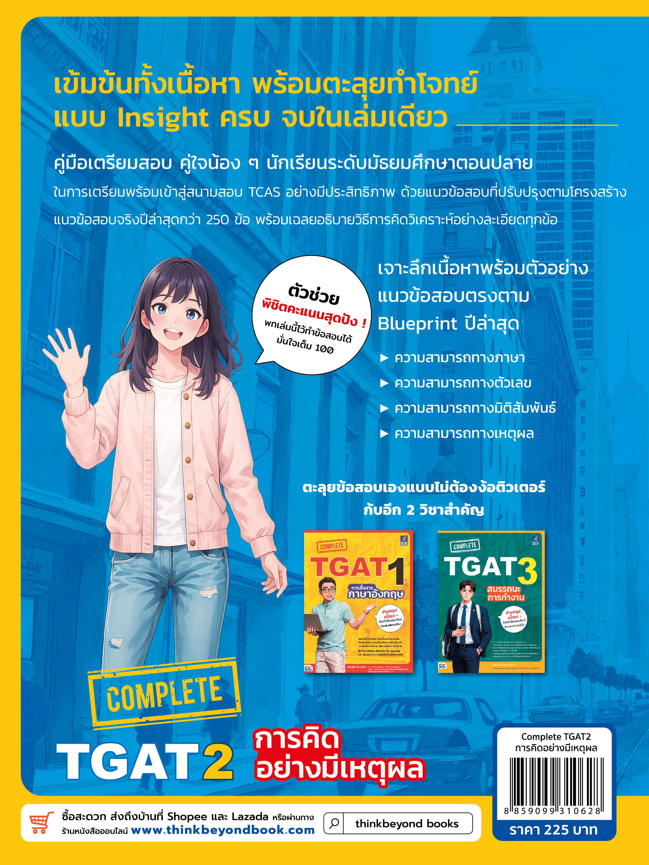 หนังสือคู่มือเรียน เตรียมสอบ COMPLETE TGAT 2 การคิดอย่างมีเหตุผล เล่มใหม่ล่าสุดและครบถ้วนที่สุดในท้องตลาด ภายในเล่มได้สรุปเนื้อหาฉบับเข้มข้น พร้อมเทคนิคการทำข้อสอบครบถ้วนทุกหัวข้อที่ออกสอบ ตรงตาม Blueprint พร้อมเจาะลึกแนวข้อสอบแบบ INSIGHT ครอบคลุมทั้ง 4 หัวข้อหลัก ตามโครงสร้างแนวข้อสอบจริง พร้อมฝึกฝนการคิดวิเคราะห์ แนว Critical & Logical Thinking ด้วยแนวข้อสอบแบบประยุกต์เข้มข้นกว่า 300 ข้อ