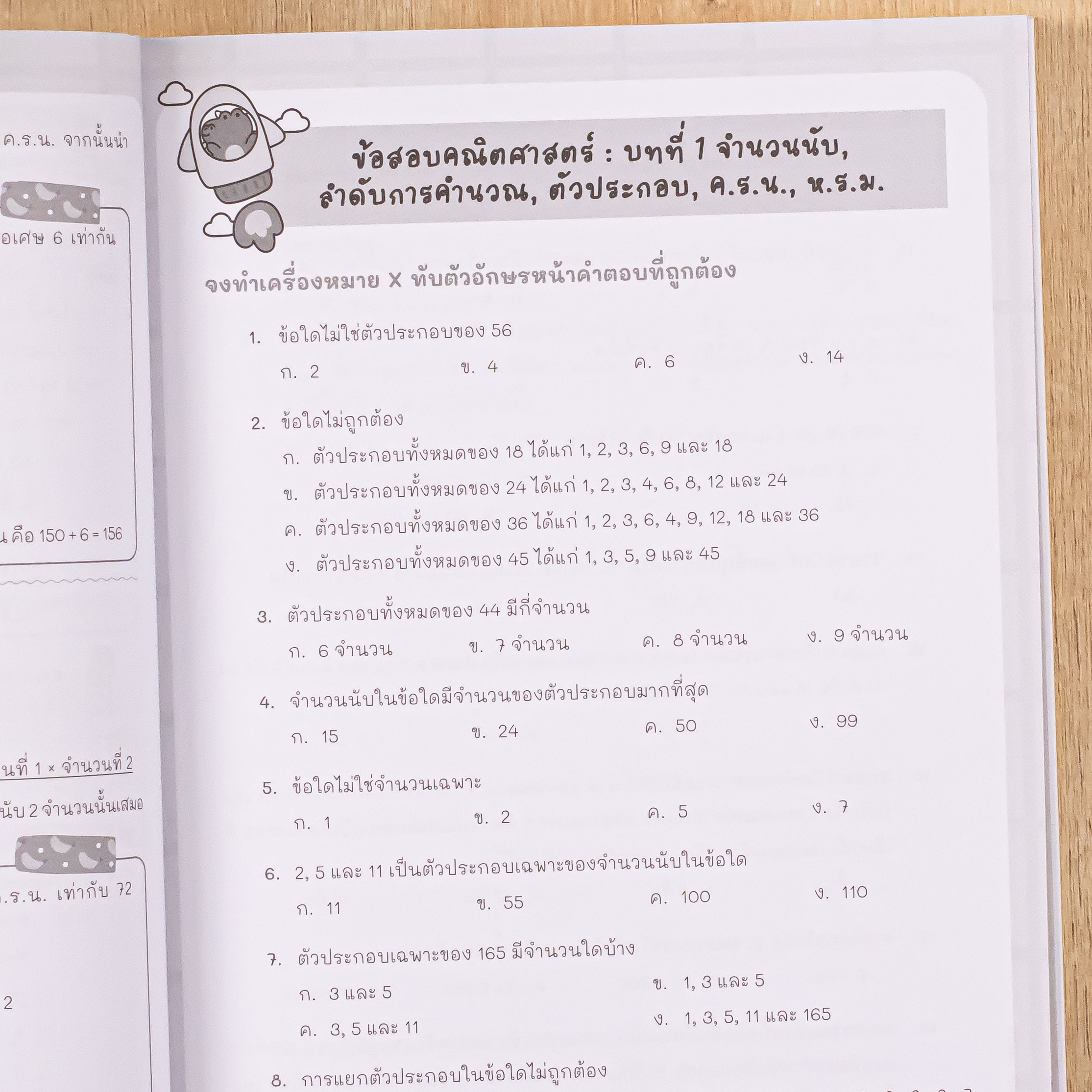 ข้อสอบคณิตศาสตร์ : บทที่ 1 จำนวนนับ, ลำดับการคำนวณ, ตัวประกอบ,