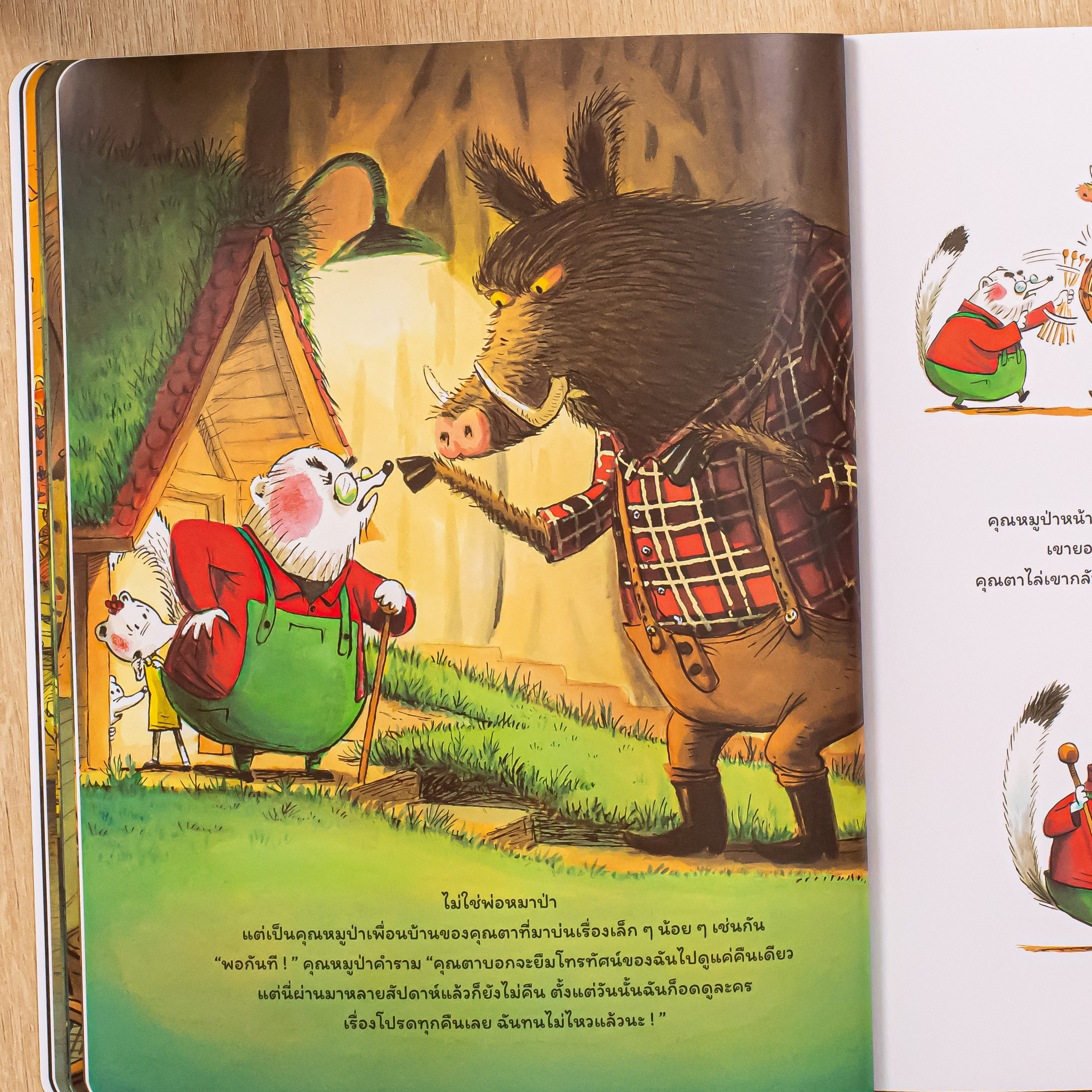 “มีใครหาหมาป่าตัวนั้นเจอไหม ?” การละเล่นธรรมดากลายเป็นการผจญภัยสุดคาดไม่ถึง เมื่อคุณตาและหลาน ๆ กำลังสวมบทบาทเป็นหมาป่าอย่างสนุกสนาน แต่แล้ว…หมาป่าตัวจริงก็โผล่มา! จากความหวาดกลัว เด็ก ๆ ได้เรียนรู้ว่าหมาป่าไม่ได้เลวร้ายอย่างในนิทาน แต่เป็นคุณพ่อที่กำลังตามหาลูกด้วยหัวใจที่เต็มไปด้วยความรักและความห่วงใย เรื่องราวสุดเซอร์ไพรส์นี้พาเด็ก ๆ เปิดใจ ยืดหยุ่นความคิด และมองผู้อื่นด้วยความเข้าใจ พร้อมสอดแทรกความเห็นอกเห็นใจอย่างแยบยล เต็มไปด้วยอารมณ์ขัน ความอบอุ่น และบทเรียน EF ที่ช่วยเสริมทักษะชีวิตได้อย่างเป็นธรรมชาติ เหมาะทั้งสำหรับการอ่านเล่นสนุก และการเรียนรู้ที่มีคุณค่าในครอบครัว
