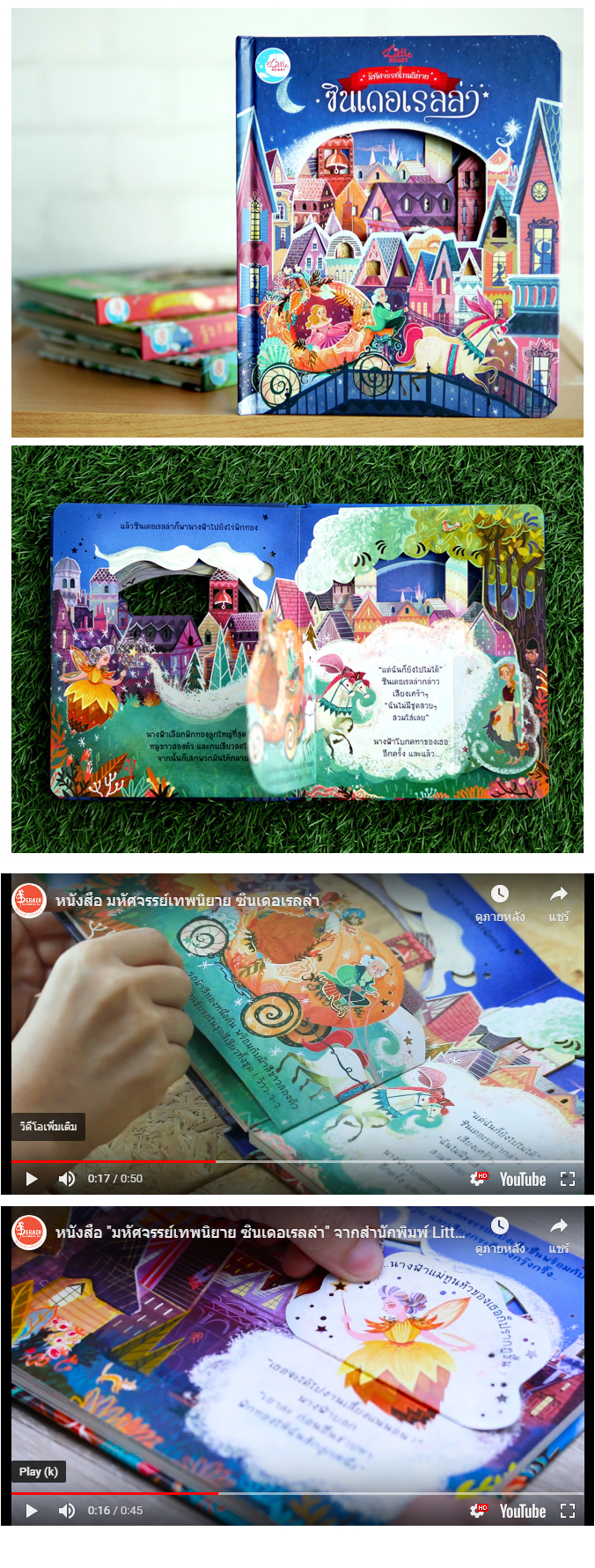 เธอได้มีชุดสวยๆ รองเท้าแก้วแสนงาม รถม้าสีทอง วันนั้นเองที่เธอได้พบกับเจ้าชายรูปงาม หลังจากคืนนั้นเจ้าชายก็ได้ออกตามหาซินเดอเรลล่าไปทั่ว เรื่องราวสุดแสนคลาสิก ถูกถ่ายทอดลงในหนังสือที่ออกแบบมาอย่างงดงาม มีแผ่นเปิด และลวดลายฉลุมากมายให้หนูๆ ได้ค้นหา และสร้างเสริมจินตนาการ อ่านกี่ครั้งก็ไม่รู้เบื่อ มาผจญภัยในโลกแห่งเวทมนต์กันเถอะ